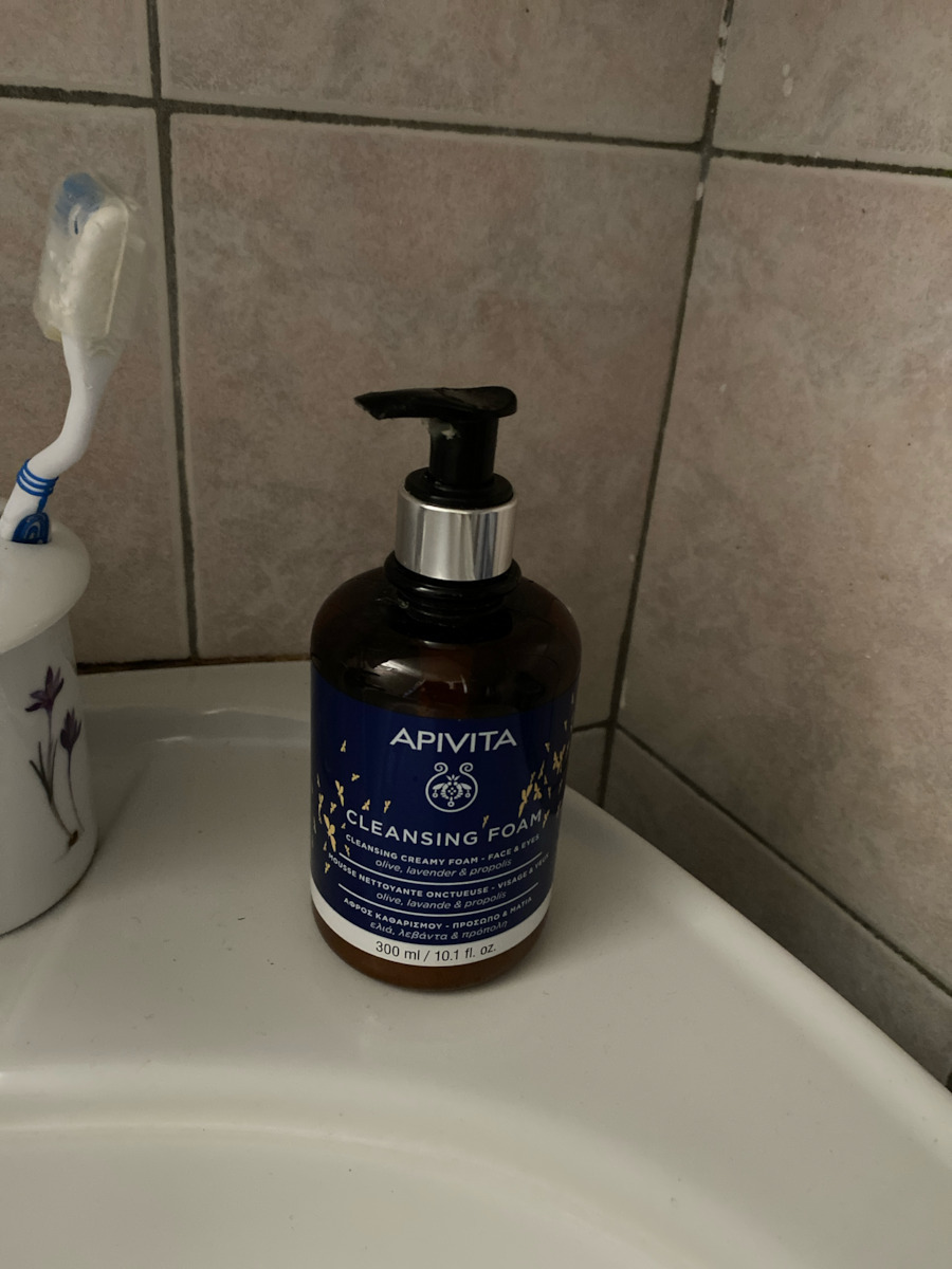 Πρακτικός κρεμώδης αφρός καθαρισμού για πρόσωπο και μάτια με ελιά και λεβάντα. Απομακρύνει τους ρύπους και το μακιγιάζ χωρίς να ερεθίζει ή να αφυδατώνει την επιδερμίδα.