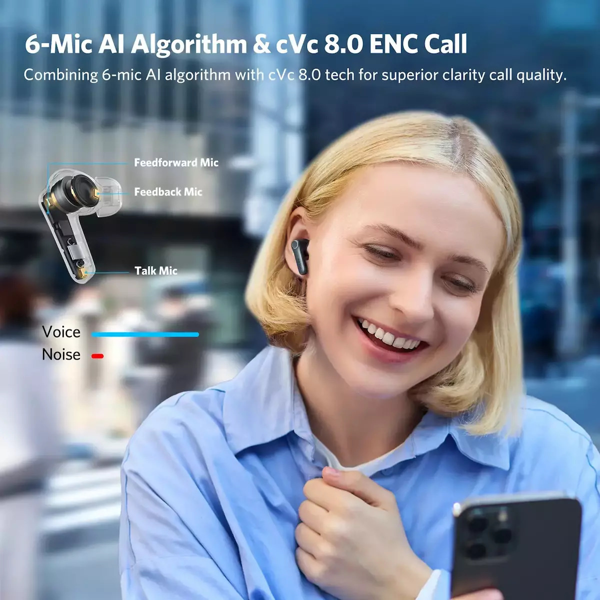 Earfun Air Pro 4 In-ear Bluetooth Handsfree Ακουστικά με Αντοχή στον Ιδρώτα και Θήκη Φόρτισης Μαύρα (TW600B)